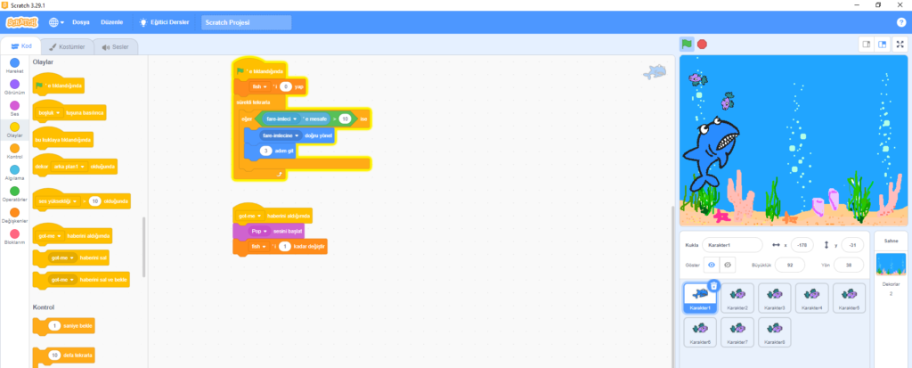 - Birden fazla balık (Karakter2, Karakter3 …)